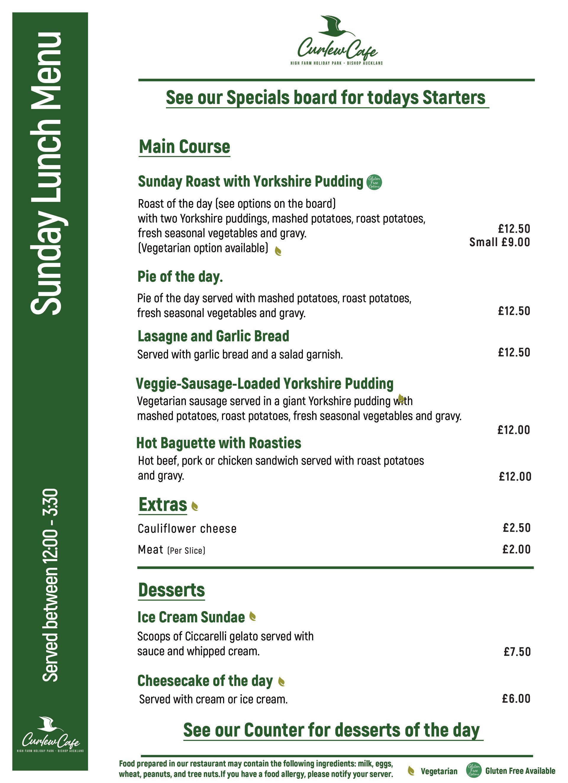Last order for food will be 4:00pm